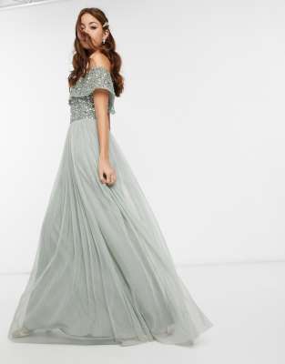Product Item: Maya bridesmaid bardot maxi tulle outlet dress