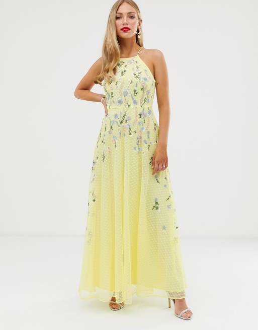 Product Item: Asos design maxi dress with outlet pinny bodice in embroidered dobby