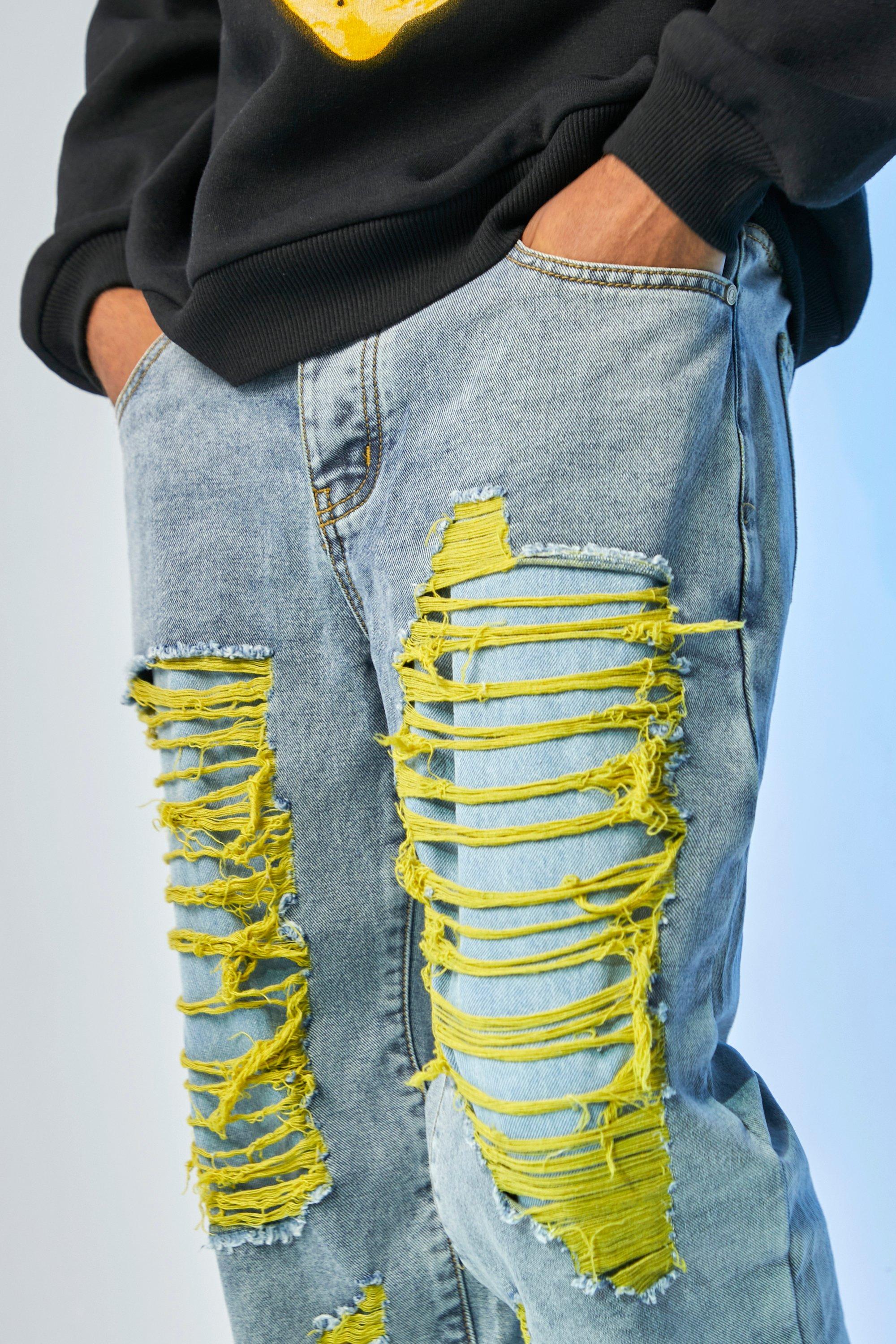 Blue jeans with outlet yellow rips