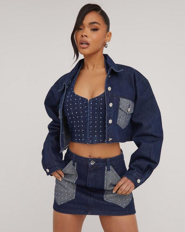 Dark blue cropped outlet denim jacket