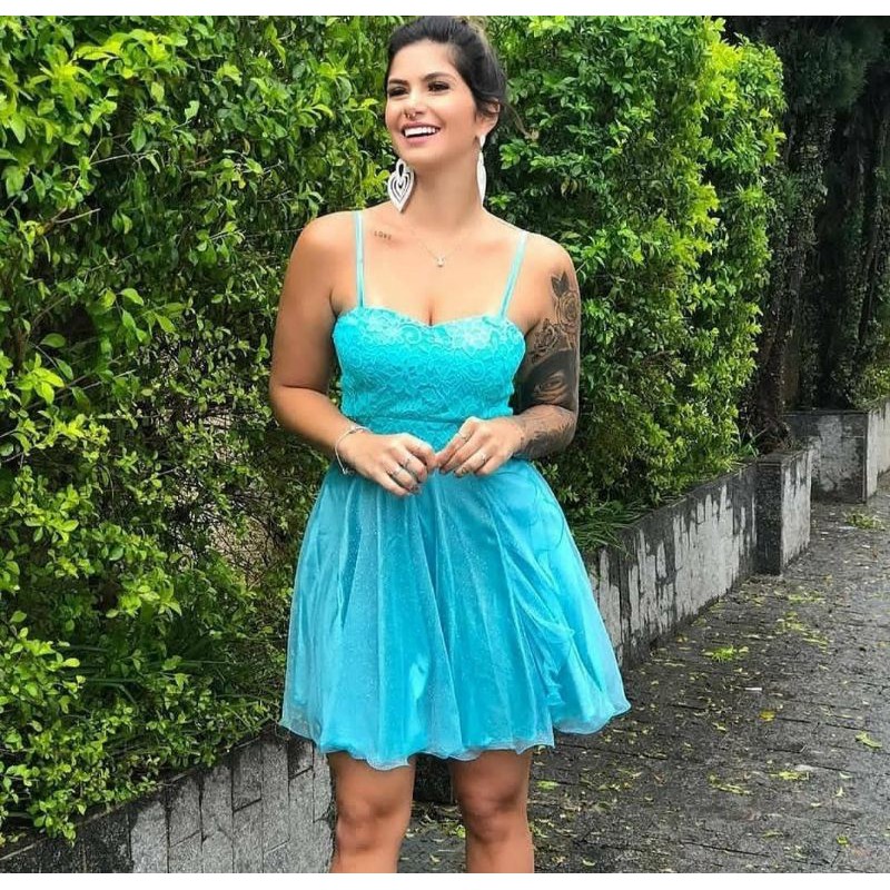 Vestido de festa curto outlet com renda e tule